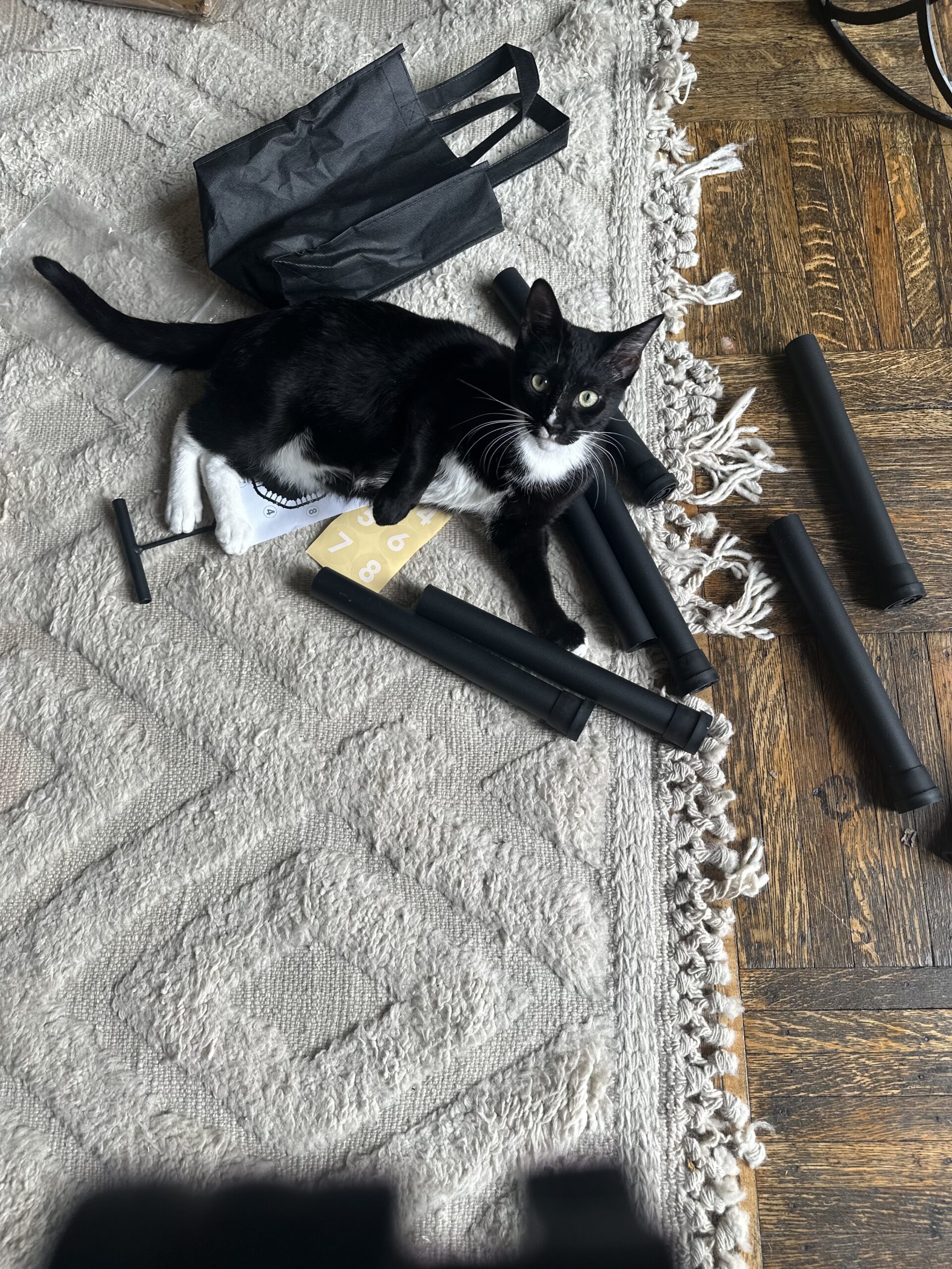 The rebounder arrived weighing approximately 23 lbs. Unboxing was simple, though one bungee cord detached during shipping and required effort to reattach — an indication of the rebounder’s firm tension and durability, and of my need to become stronger!